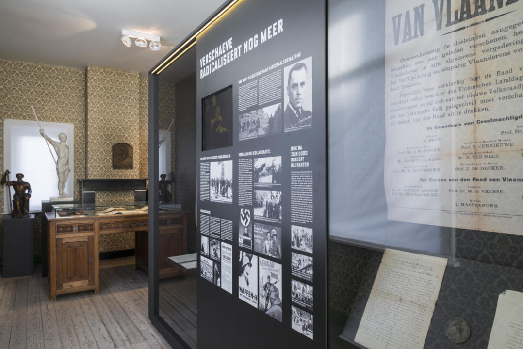 Inrichting van de voutekamer in de Kapelanij van priester-dichter én beeldhouwer Cyriel Verschaeve, het aller-retour verhaal van Alveringem tijdens WOI in het paviljoen in de tuin, en het toeristisch onthaal in de garage.